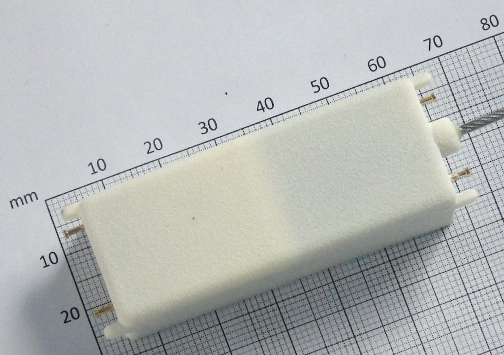 A picoFix® 2.3g GPS and depth logger. This tag has been successfully deployed on a number of species including Peruvian diving petrels and puffins. It measures 24x13x7mm plus ~50mm external whip antenna, with an additional 4mm height to the top of the depth sensor. It can provide up to 1600 GPS location attempts (depth and accelerometer data may reduce this slightly – contact us for further details). This tag is depth proof to 50m. Burst or continuous accelerometer data capture is available at rates of 1Hz, 12.5Hz, 25Hz or 50Hz. This tag has an extra large onboard memory to allow high rate depth and accelerometer data capture for extended time periods.