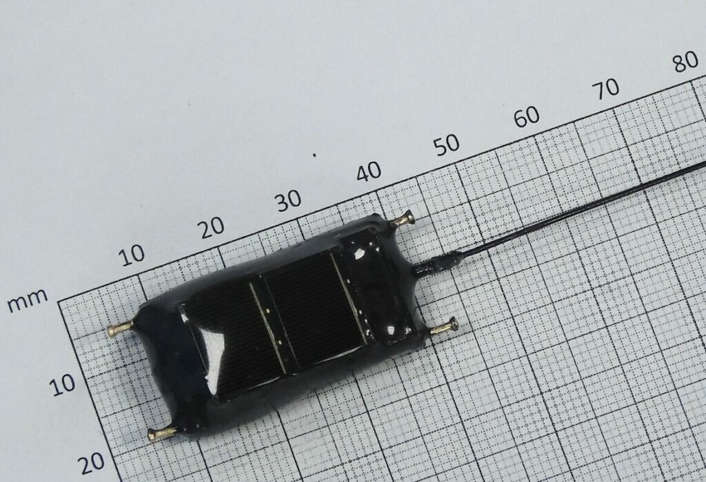 Our lightest solarPlus picoFix® tag with UHF download weighs in at just 2.4g. It has been successfully deployed on a variety of species such as choughs, common terns, lapwings and whiskered terns. It measures 34x12x7mm plus ~50mm external whip antenna. This tag has a battery that can provide 700 GPS location attempts including regular UHF download attempts depending on species, and a solarPlus solar panel that can provide an additional 360 GPS attempts per day in UK summertime conditions depending on species. Burst or VeDBA accelerometer data capture are available at a range of sample rates.